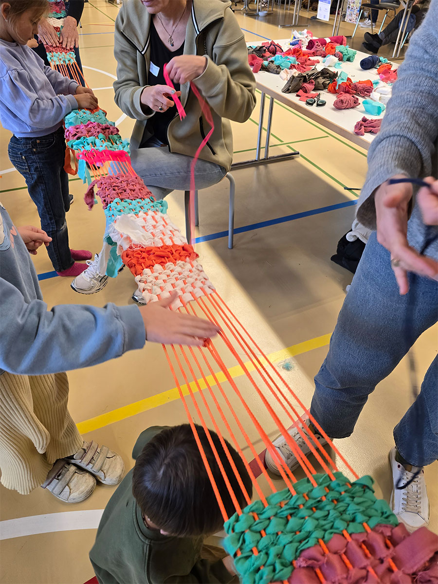 De son côté, l’association Action PARRAINAGES a tenu un atelier de fabrication de cerfs-volants qui a attiré jeunes et moins jeunes tout au long de l’après-midi. L’association Reliefs a permis aux participants et participants de réaliser un chemin de table composé de diverses chutes de tissus, liées entre elles, en représentation d’une société citoyenne et inclusive.